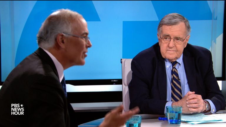 May 04 Watch 12:25 Shields and Brooks on Trump’s legal troubles, House chaplain politics Syndicated columnist Mark Shields and New York Times columnist David Brooks join John Yang to discuss the week’s news, including the media blitz by Trump attorney Rudy Giuliani over the payment to adult film actress Stephanie Clifford, a new low… Continue watching