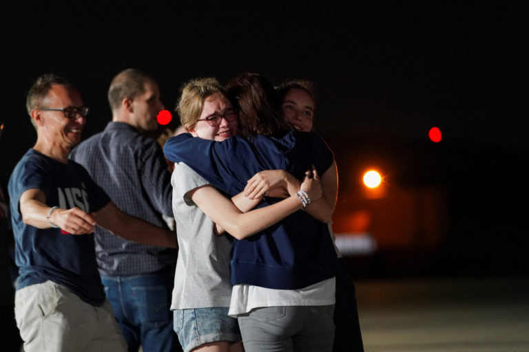 Aug 02 Watch 3:25 Families reunited as Americans who were detained in Russia arrive home By Nick Schifrin, Zeba Warsi, Lachlan Hyatt Rarely has an airport seen such joy after very long delays. But Thursday night was no ordinary night at Joint Base Andrews near Washington where three Americans held by Russia returned home to a presidential welcome. Nick Schifrin reports. Continue watching