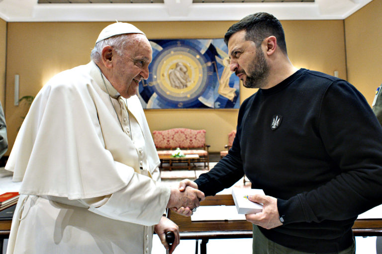 May 13 Ukraine’s Zelenskyy meets with Pope Francis at Vatican, Italian premier during Rome visit By Frances D'Emilio, Associated Press Ukrainian President Volodymyr Zelenskyy had private talks with Pope Francis at the Vatican on Saturday, later saying he sought support for his peace plan from the pontiff , who in the past has offered to try to help end the… Continue reading