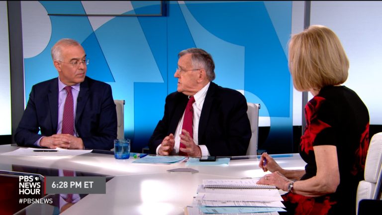 May 10 Watch 12:33 Shields and Brooks on Trump’s subpoena standoff, China trade war Syndicated columnist Mark Shields and New York Times columnist David Brooks join Judy Woodruff to discuss the week’s political news, including 2020 Democrats on the campaign trail in Iowa, the standoff between Congress and the White House over the Mueller… Continue watching