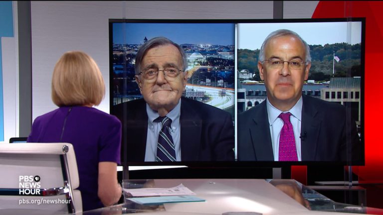 Apr 24 Watch 11:16 Shields and Brooks on Trump’s briefings, coronavirus aid Syndicated columnist Mark Shields and New York Times columnist David Brooks join Judy Woodruff to discuss the week’s news, including President Trump’s controversial medical commentary, the respective roles of federal and state governments in the crisis, American public opinion on… Continue watching