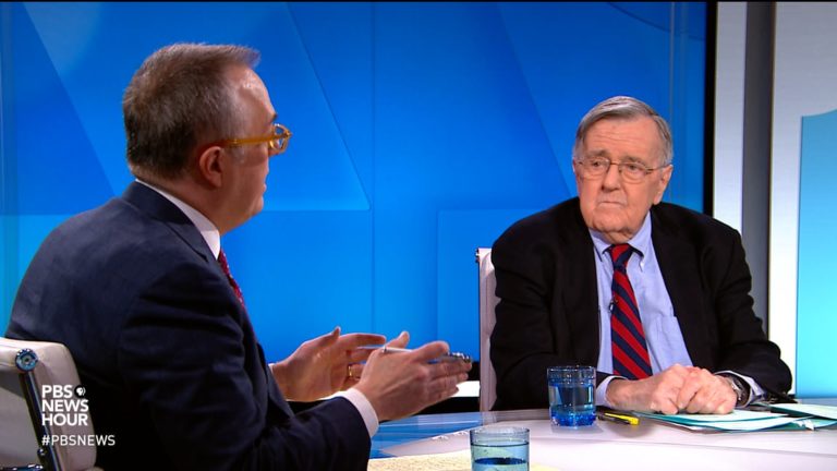 Dec 27 Watch 13:43 Shields and Brooks on 2019 in review, 2020 predictions Syndicated columnist Mark Shields and New York Times columnist David Brooks join Amna Nawaz to discuss the week’s political news, including the battle between House Speaker Nancy Pelosi and Senate Majority Leader Mitch McConnell over rules for a Senate impeachment… Continue watching