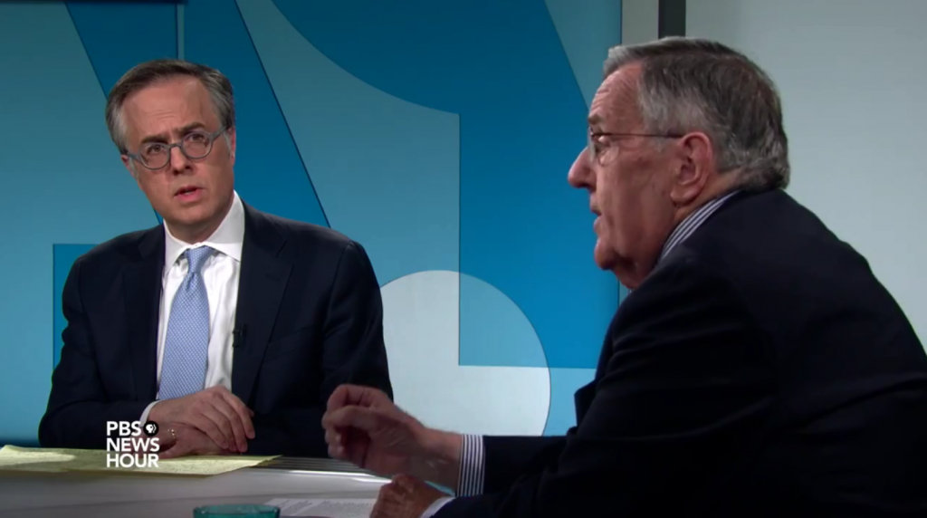 Sep 04 Watch 13:43 Shields and Gerson on refugee crisis responsibility, Trump’s GOP pledge By PBS News Hour Syndicated columnist Mark Shields and Washington Post columnist Michael Gerson join Judy Woodruff to discuss the week’s news, including Hillary Clinton’s latest interview on her use of a private email server, Donald Trump’s pledge not to run as a third-party… Continue watching