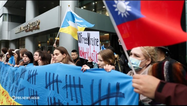 Apr 08 Watch 8:04 Taiwan closely watches Ukraine war, fearing China could attempt a similar takeover By Nick Schifrin, Dan Sagalyn Ukrainian President Zelensky said troops in eastern Ukraine captured Chinese nationals fighting for Russia, a reminder of that war's global impact. Russia’s invasion has affected the thinking in Taiwan, which sees itself confronting a larger neighbor that challenges its sovereignty. Continue watching
