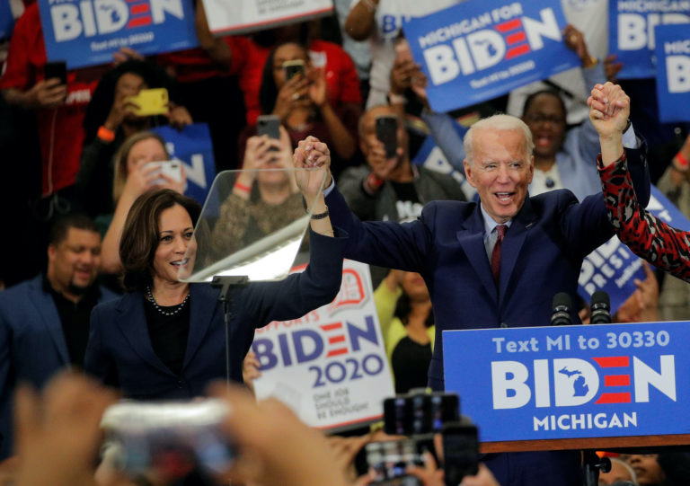 Aug 12 Watch 6:01 In debut as running mates, Biden and Harris share vision for defeating Trump Former Vice President Joe Biden and California Sen. Kamala Harris hit the campaign trail Wednesday afternoon. At a joint appearance in Wilmington, Delaware, the two took the stage in front of reporters, but no supporters, to share their vision for… Continue watching