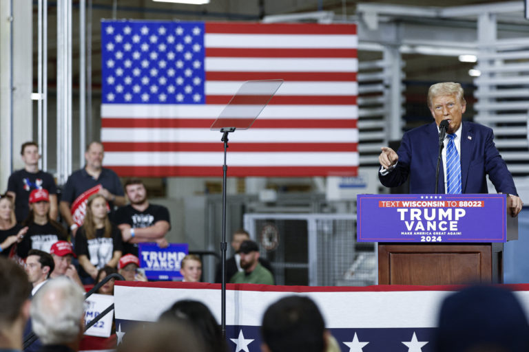 Oct 01 WATCH: Trump campaigns at a manufacturing facility in Waunakee, Wisconsin By Scott Bauer, Associated Press In an event advertised as economic-themed, Trump bounced from subject to subject, also criticizing Democratic nominee Harris on issues, including foreign policy, crime and immigration, while intermittently pivoting to outgoing President Joe Biden. Continue reading