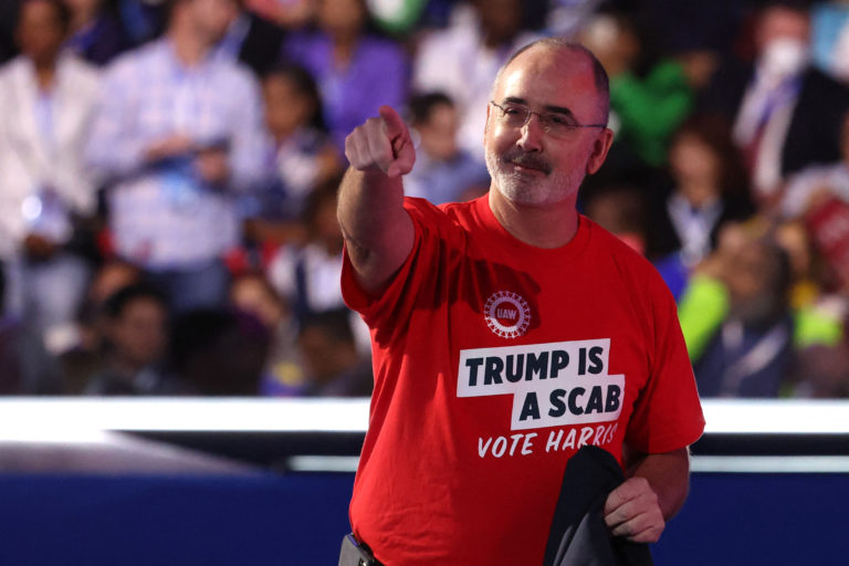 Aug 19 WATCH: UAW’s Shawn Fain speaks at the Democratic National Convention, revealing ‘Trump is a scab’ T-shirt By Associated Press United Auto Workers President Shawn Fain called Kamala Harris a “fighter” for the working class and denounced Donald Trump as a “scab,” a term that applies to workers who cross picket lines and defy union actions. Continue reading