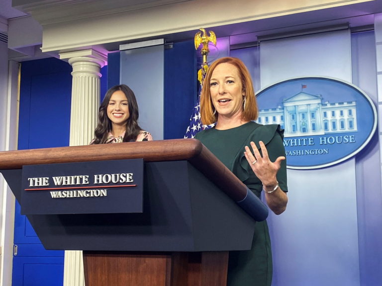 Jul 14 WATCH: Pop star Olivia Rodrigo joins Jen Psaki during White House news briefing By Associated Press The 18-year-old pop star and internet sensation was at the White House on Wednesday to meet with President Joe Biden and Dr. Anthony Fauci as part of the administration's efforts to encourage younger Americans to roll up their sleeves and… Continue reading
