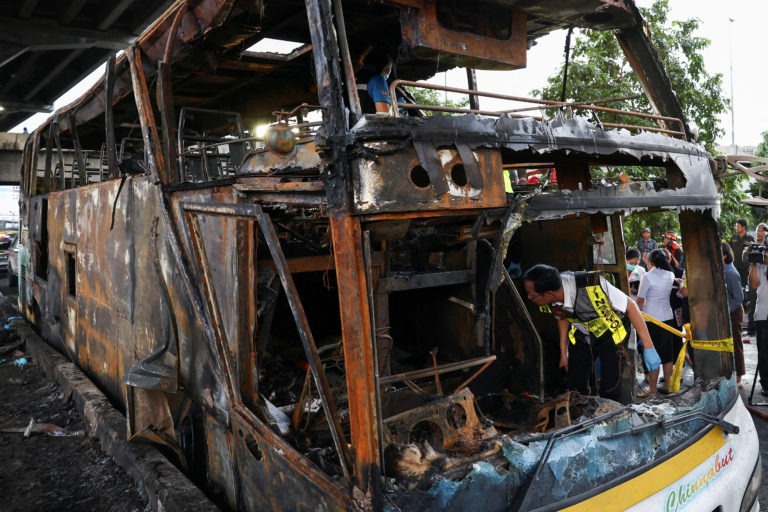 Oct 01 School bus catches fire in suburban Bangkok, leaving 20 dead, officials say By Jintamas Saksornchai, Associated Press Officials and rescuers say a school bus carrying young students and their teachers on a school trip caught fire in suburban Bangkok, leaving more than 20 feared dead. Continue reading