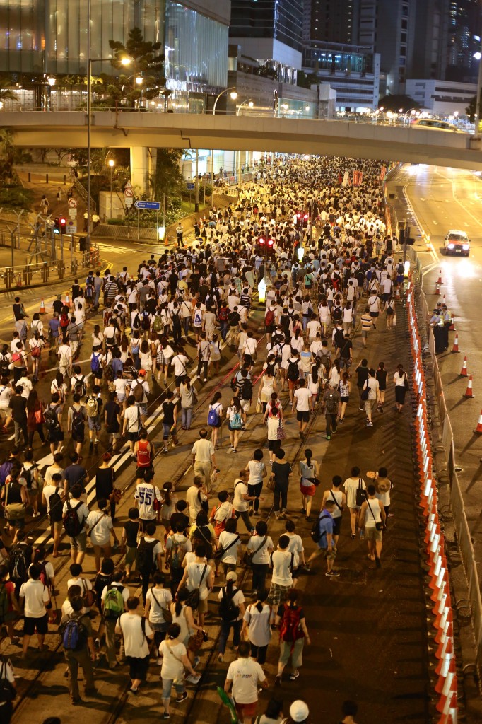By — Ruth Tam Ruth Tam Leave your feedback Share Copy URL https://www.pbs.org/newshour/world/pro-democracy-activists-swarm-hong-kong-anniversary-chinese-takeover Email Facebook Twitter LinkedIn Pinterest Tumblr Share on Facebook Share on Twitter Pro-democracy activists swarm Hong Kong on anniversary of Chinese takeover World Jul 1, 2014 3:37 PM EDT At the peak of a stifling hot Tuesday, a historic number of Hong Kong activists marched more than three miles in support of elections free from Chinese oversight. Protesters gathered at Victoria Park, where annual vigils for the Tiananmen Square victims are held, and walked west to the city’s central financial district. Several of the activists were among the 787,767 participants of an unofficial referendum calling for candidates for Hong Kong’s leader be nominated by the public instead of Chinese officials. Beijing-allied authorities have characterized the referendum as unlawful. In response, the pro-democracy group threatened a sit-in of the city’s financial district if the existing government fails to provide basic voting rights. Under China’s “one country, two systems” rule of law, Hong Kong was grafted into China in 1997, yet allowed autonomy. But a “white paper” from Beijing has recently clarified that this autonomy is not “full” autonomy: Today’s march was peaceful, but frustrations over Hong Kong’s Chief Executive have been simmering for years. In 2012, Beijing-backed Leung Chun-ying won 689 votes from 1,193 society representatives to become Hong Kong’s Chief Executive. These representatives are largely business executives and existing politicians with connections to mainland China. For the tens of thousands of Hong Kong activists, this authorized autonomy falls far short of real democracy. While participants (ranging from 98,000, according to police, and 510,000, according to organizers) hope they will be able to choose their own leadership by the 20th anniversary of China’s takeover in 2017, mainland China representatives assert that only leaders who “love the country and love Hong Kong” should be on the ballot. A free press is a cornerstone of a healthy democracy. Support trusted journalism and civil dialogue. Donate now By — Ruth Tam Ruth Tam Online Editorial Production Assistant at the PBS NewsHour. @ruthetam