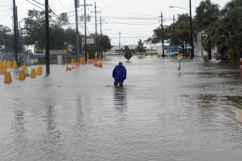 7:15 p.m. ET | Several Louisiana parishes and counties in Mississippi have reported flooding from Tropical Storm Lee, though the damage in New Orleans has thus far been less than feared, with levees holding after more than 12 inches of rain. Much like Hurricane Irene in the Northeast last weekend, Tropical Storm Lee could bring more flooding as it churns toward the Tennessee Valley. According to the Associated Press, National Hurricane Center specialist Robbie Berg said Lee’s flash flood threat could be more severe as the rain moves from the flatter Gulf region into the rugged Appalachians. Closer to the Gulf, the water is “just going to sit there a couple of days,” he said. “Up in the Appalachians you get more threat of flash floods – so that’s very similar to some of the stuff we saw in Vermont.” A resident wades through a flooded street following heavy rains from Tropical Storm Lee on Sept. 3, 2011. Photo by Cheryl Gerber/Getty Images. 9 a.m. ET | Tropical Storm Lee brought heavy rain to southern Louisiana early Sunday, dropping 6 to 10 inches of rain in some places and threatening low-lying areas. Thousands of residents in Louisiana and Mississippi were without power. More heavy rain is expected as Tropical Storm Lee moves along the Gulf Coast. As of Sunday it had maximum sustained winds of 45 miles per hour and was moving at a rate of only 2 miles per hour, meaning the slow storm could bring rain as far north as the Tennessee Valley Monday evening. Louisiana Gov. Bobby Jindal said that there are “severe weather warnings and tornado warnings in effect for parts of the state, and residents everywhere need to use extreme caution.” The National Hurricane Center has warned of possible tornadoes in Louisiana, Mississippi Alabama and parts of the Florida panhandle. Coastal areas that would normally receive an influx of Labor Day visitors were cleared out, leaving businesses that rely on tourists without visitors on what would be one of the busiest weekends of the summer. Another storm, Katia, which has been churning over the Atlantic, regained Hurricane status Sunday morning. The storm is not expected to make landfall for several more days. A free press is a cornerstone of a healthy democracy. Support trusted journalism and civil dialogue. Donate now