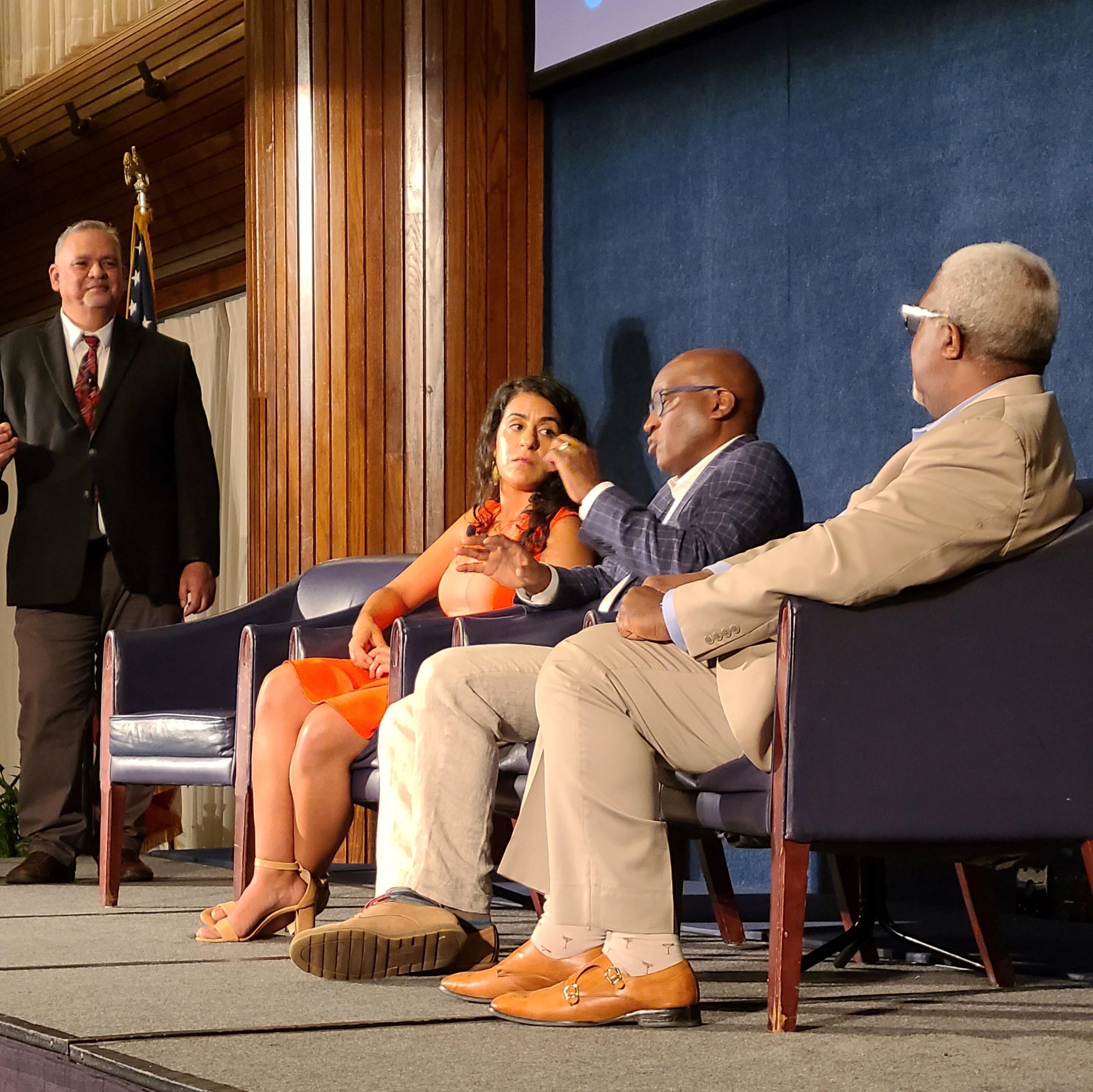 The panel members were Terence Samuel, vice president of news and executive editor of NPR; Elahe Izadi, media reporter at The Washington Post; and Sam Fulwood III, dean of American University’s school of communication and a veteran journalist. I am the Public Editor of PBS and I come from a background of investigative journalism for big-city dailies in California and Texas, and as a foreign correspondent for two of them.