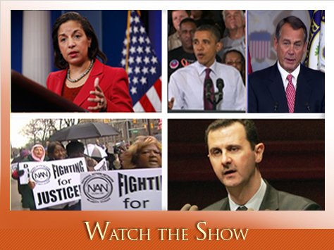 MS. IFILL: Well, there was another sticky situation this week for the Obama administration, and that was in Syria. The U.S. has stepped up missile defense along Syria’s border with Turkey, hoping to stave off the potential use of chemical weapons against anti-Assad rebels. And, for the first time, the U.S. is formally recognizing the rebels’ attempt to overthrow President Assad. And we are at the end game, or are we? Martha?