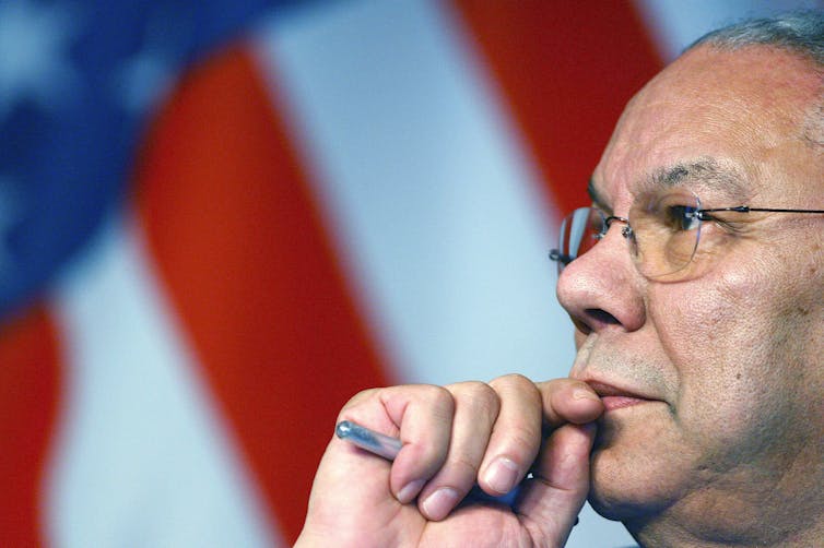 In February 2003, Powell argued before the United Nations Security Council for military action against Iraq – a speech that erroneously claimed that Saddam Hussein had stockpiled weapons of mass destruction. He hadn’t, and the war that Powell helped steer the U.S. into scars his legacy.