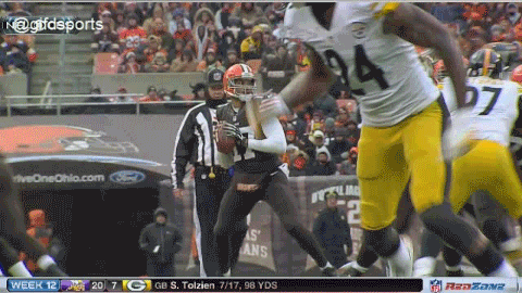 Coach Rob Chudzinski pressed officials for a roughing penalty, but no flag was thrown on the play. “I felt like he was hit in the head on that,” said Chudzinski. “They didn’t feel that way. [They said he] was hit on the shoulder.”