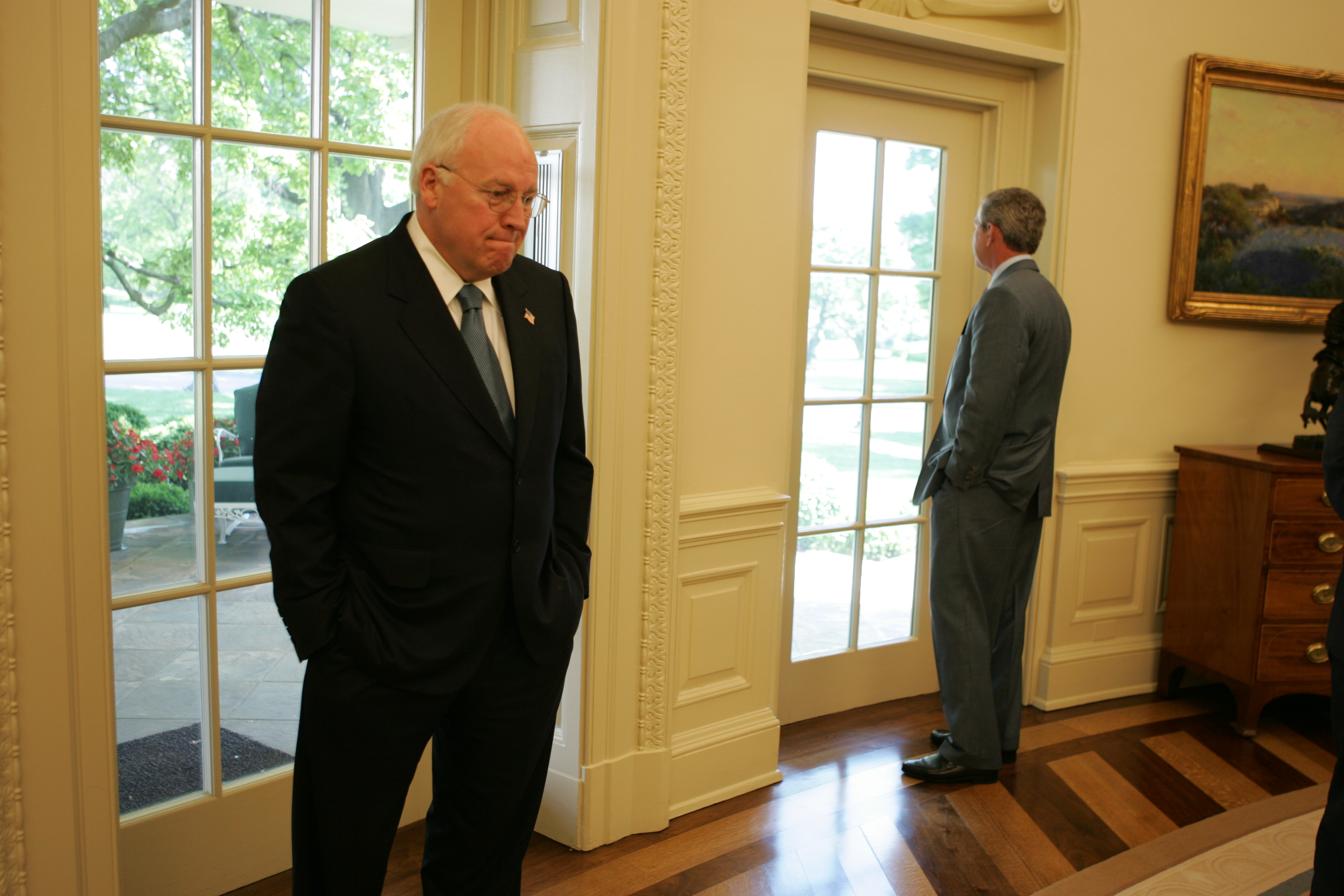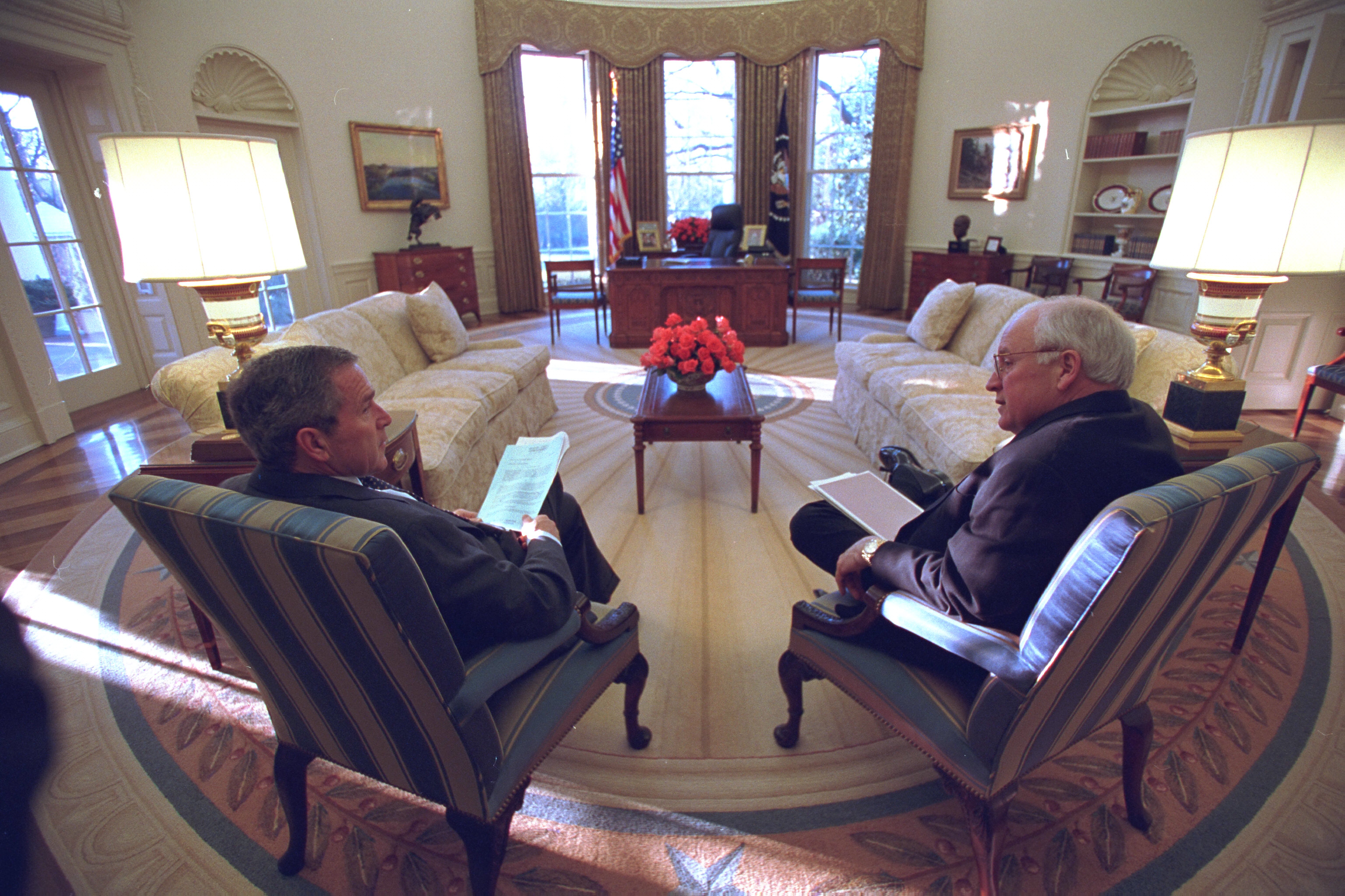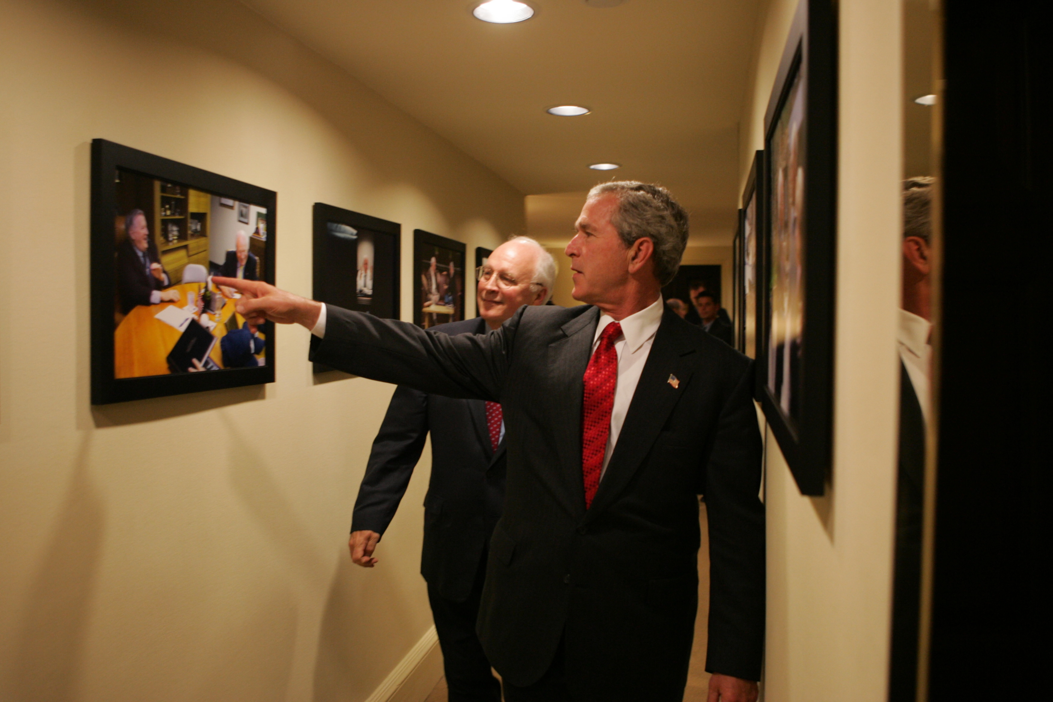 The entire cache of photographs released yesterday can now be seen on the National Archives’ Flickr account. The collection includes a number of intimate photos of Cheney and President George W. Bush. Others include rare moments from inside the vice president’s office, while a third set of photographs detail the role of David Addington, Cheney’s top attorney and a senior advisor who worked with the vice president on national security issues.