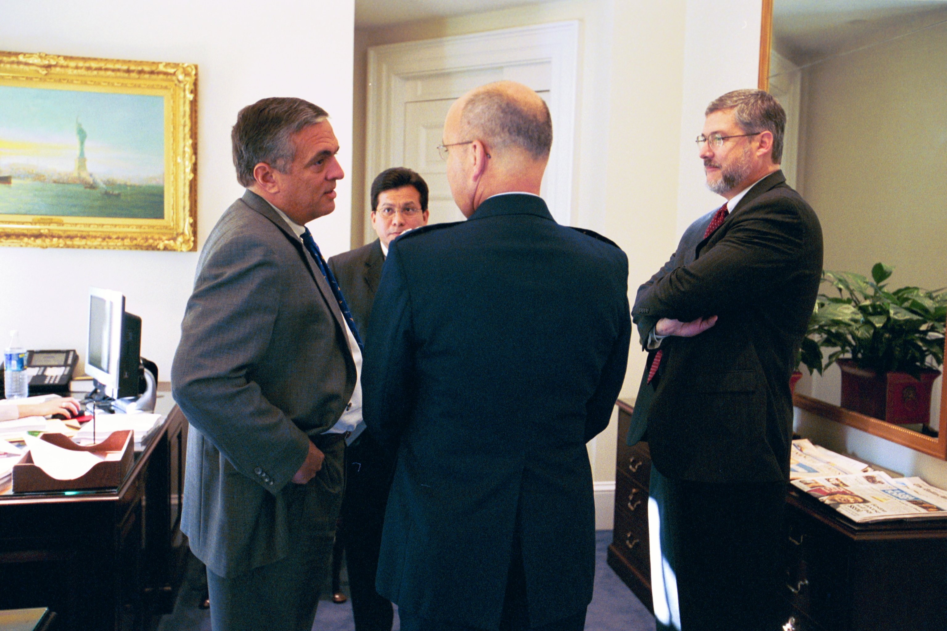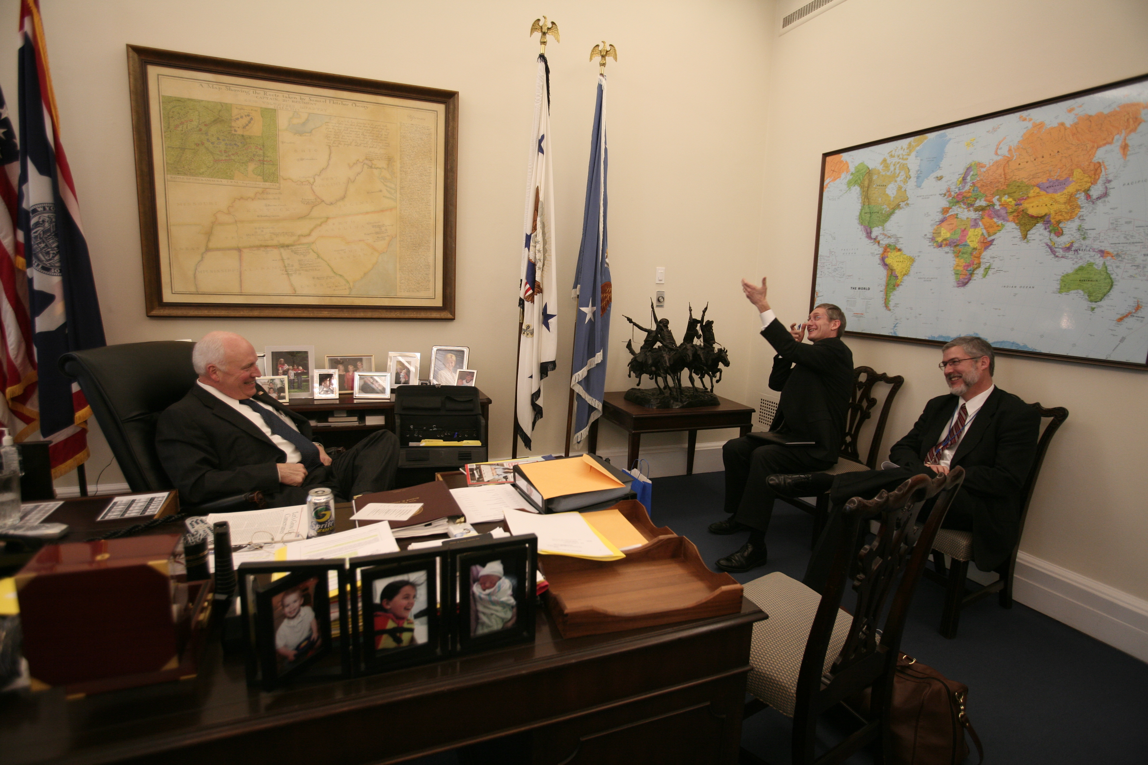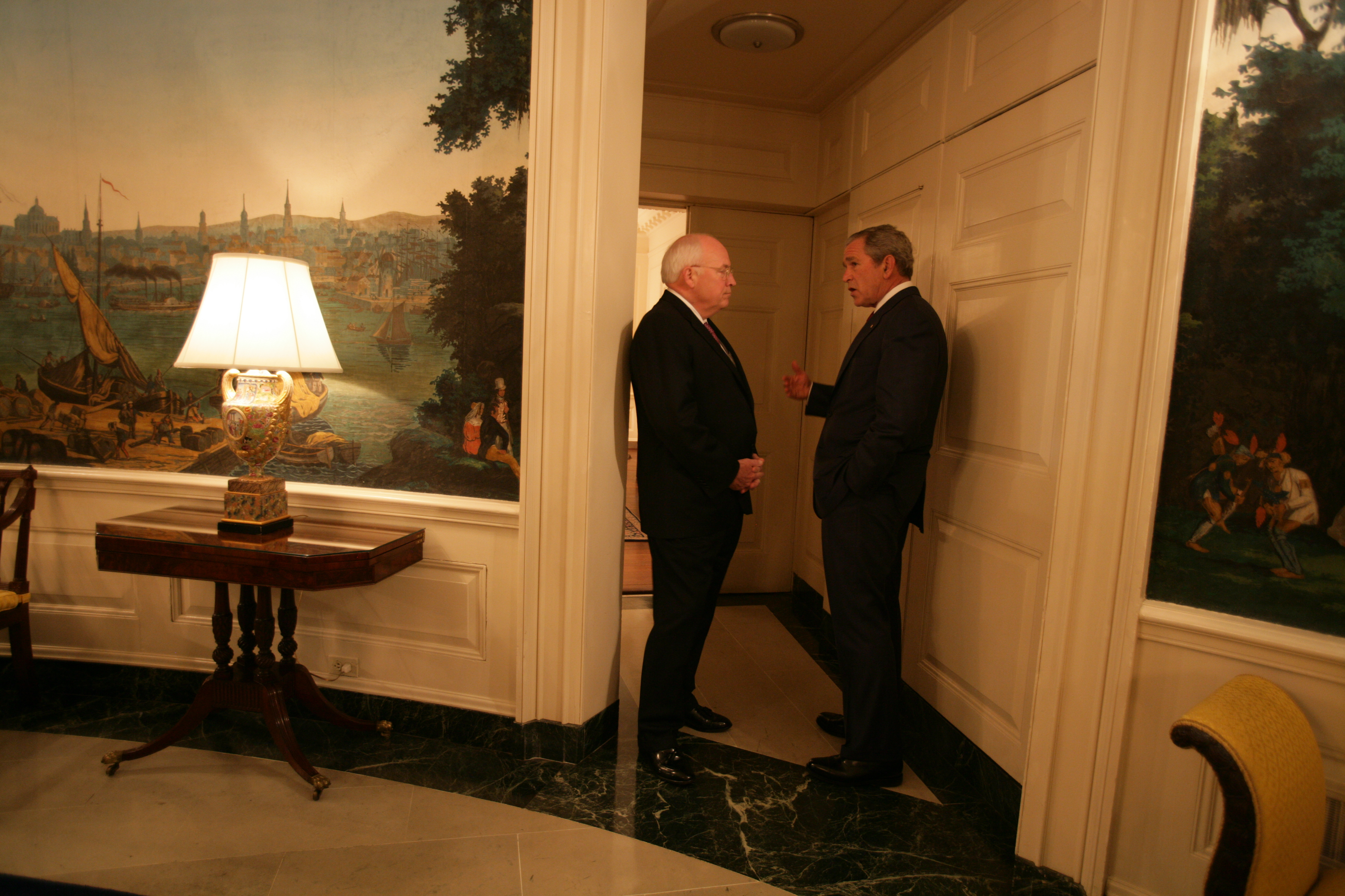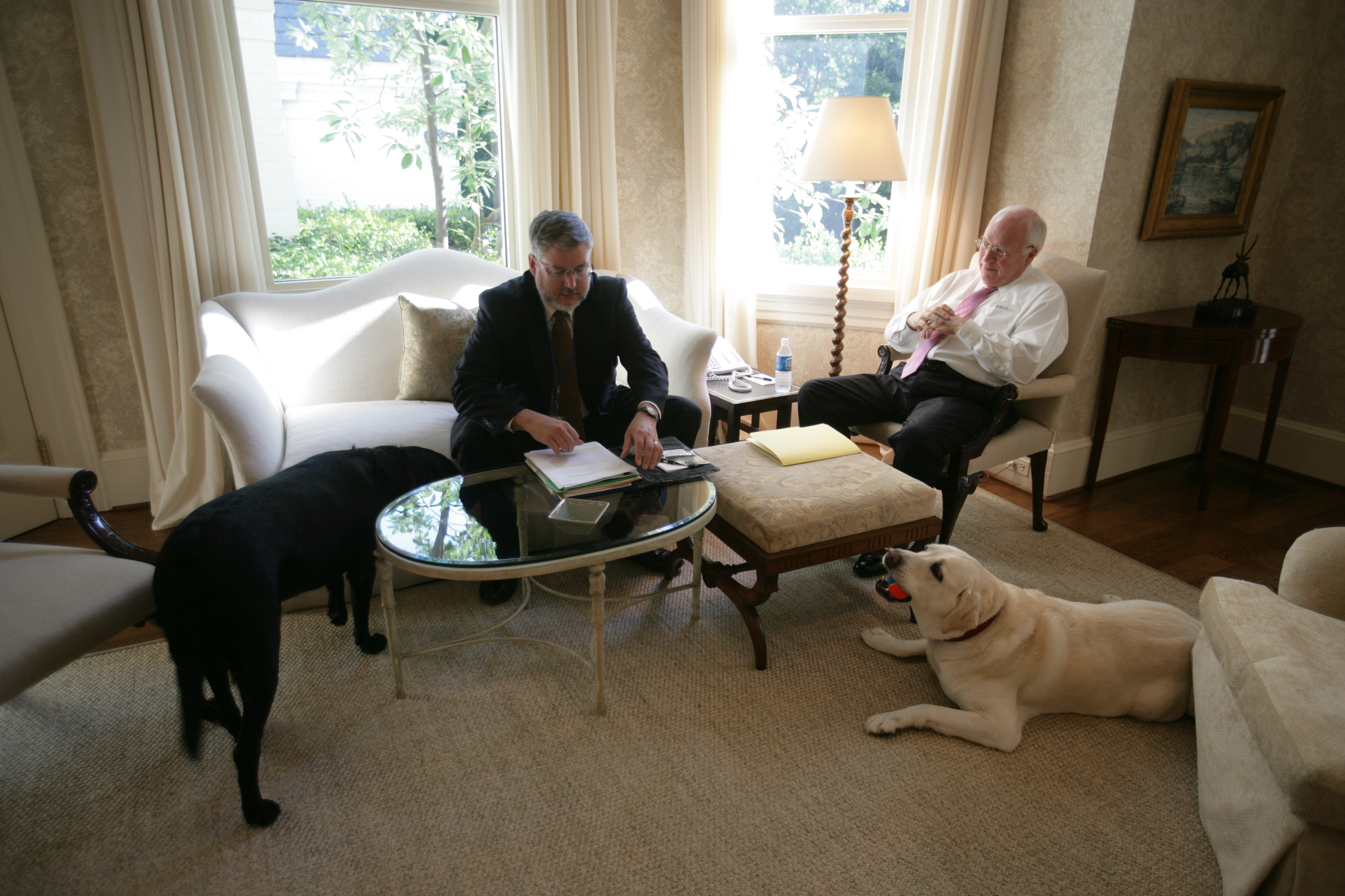 The entire cache of photographs released yesterday can now be seen on the National Archives’ Flickr account. The collection includes a number of intimate photos of Cheney and President George W. Bush. Others include rare moments from inside the vice president’s office, while a third set of photographs detail the role of David Addington, Cheney’s top attorney and a senior advisor who worked with the vice president on national security issues.