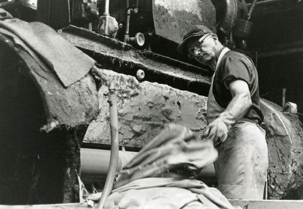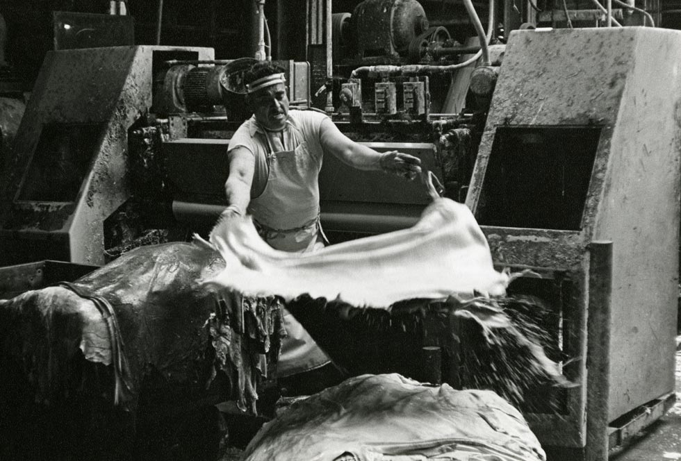Tanning in Milwaukee benefited from the city’s once-thriving meatpacking industry. Hides arriving from slaughterhouses needed to be soaked in vats of salt and lye for several days to remove their hair. As author John Gurda writes, “working with heavy hides and corrosive liquids in constant stench was not for the faint of heart.”nn Robert Drea/ Courtesy Milwaukee Public Librarynn