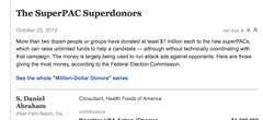 The Sunlight Foundation tracks the expenditures of SuperPACs that have raised or spent at least $10,000 since the beginning of 2011.