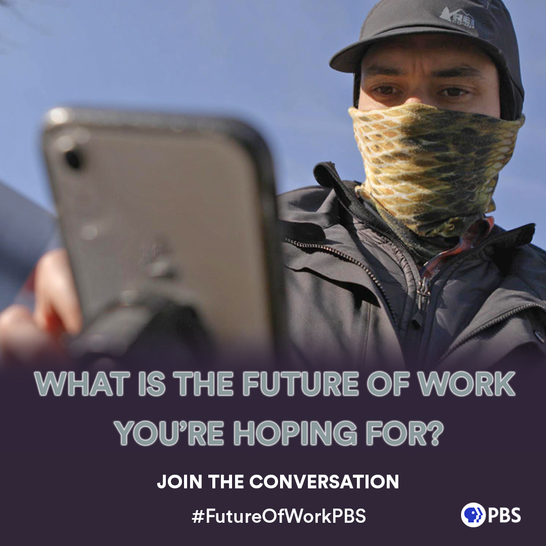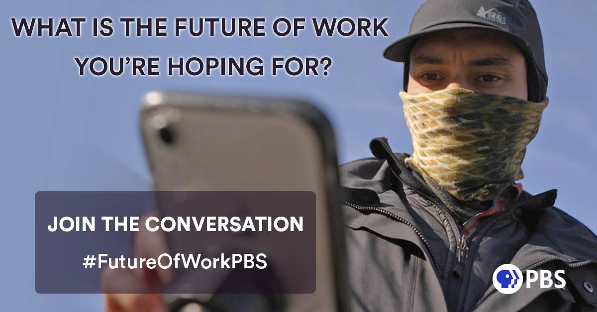 We encourage you to answer through textual commentary, a still image, a short-form video on social media — however you feel most comfortable and on whatever platform you are most comfortable — using the hashtag #FutureOfWorkPBS.