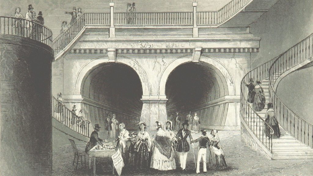 The Thames Tunnel was hailed as “The Eighth Wonder of the World” when it opened in 1843. Over 50,000 onlookers watched the opening spectacle, which included aerialists, jugglers, and an appearance by the Queen herself.