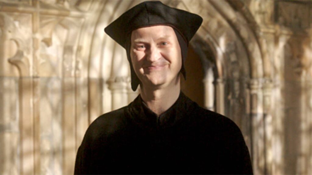 Thomas Cromwell: No, let’s have this straight. Thomas here says ‘I’d spend my life in the church, if I had a choice. I’m devoted to things of the Spirit. I care nothing for wealth, for the world’s esteem is nothing to me.’ So how is it I come back to London and find you’ve become Lord Chancellor?