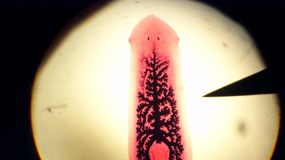 The flatworms here are planarians, a nonparasitic genus. Their brains are incredibly simple, so simple in fact that they’re perhaps better described as ganglia, or bundles of nerves. That may help explain why, after their heads were removed and regrew, the flatworms could still remember the simple training researchers put them through before the “incident.” Planarian memories may reside not just in the brain, but elsewhere in the body.