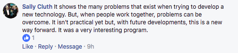 In response to our question , “What did you think of ‘The Impossible Flight?'”, Sally Cluth wrote :