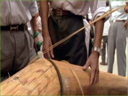 together in some places, and bamboo rope in others—two