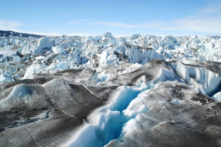 Gordon: Because the glacier’s moving so fast, it cracks apart, and so you have pinnacles of ice and these great, yawning crevasses. You could drive easily several school buses into them, and there would still be plenty of space to leave an open void.