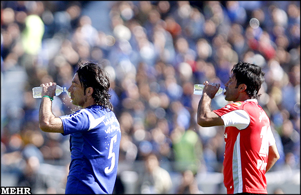 Chants of Ya Hossein, Mir Hossein emerge from stands during live broadcast of today's soccer match at Azadi Stadium in Tehran.