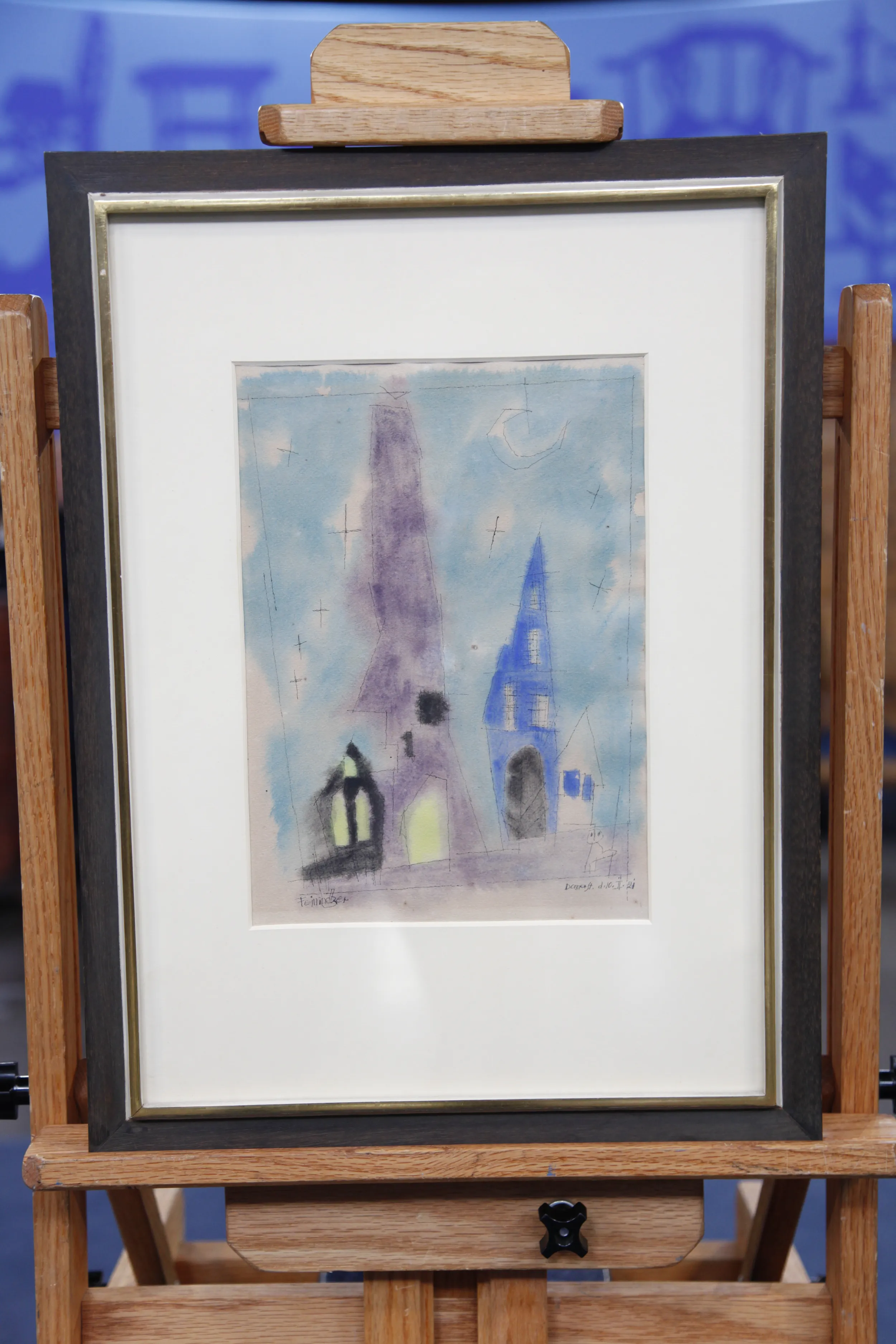 APPRAISER: So you can see here that the stars have been reduced to these kind of cross-like, or X-like shapes. And Feininger's style, he would reduce his subjects to very simple shapes or planes, and then combine them with this linear definition. Very interesting artist. He was born in New York in 1871 to parents who were both musicians. And they fully expected him to study music, but he decided he wanted to study art, and he went off and studied in Paris and Germany. And in 1919, he was asked to teach at the Bauhaus, which is a very famous school of art, craft, design. Very influential in the Modernist art world. And then he had to come back to the States when the Nazis took over Germany. This really is a wonderful work. The colors are so great.