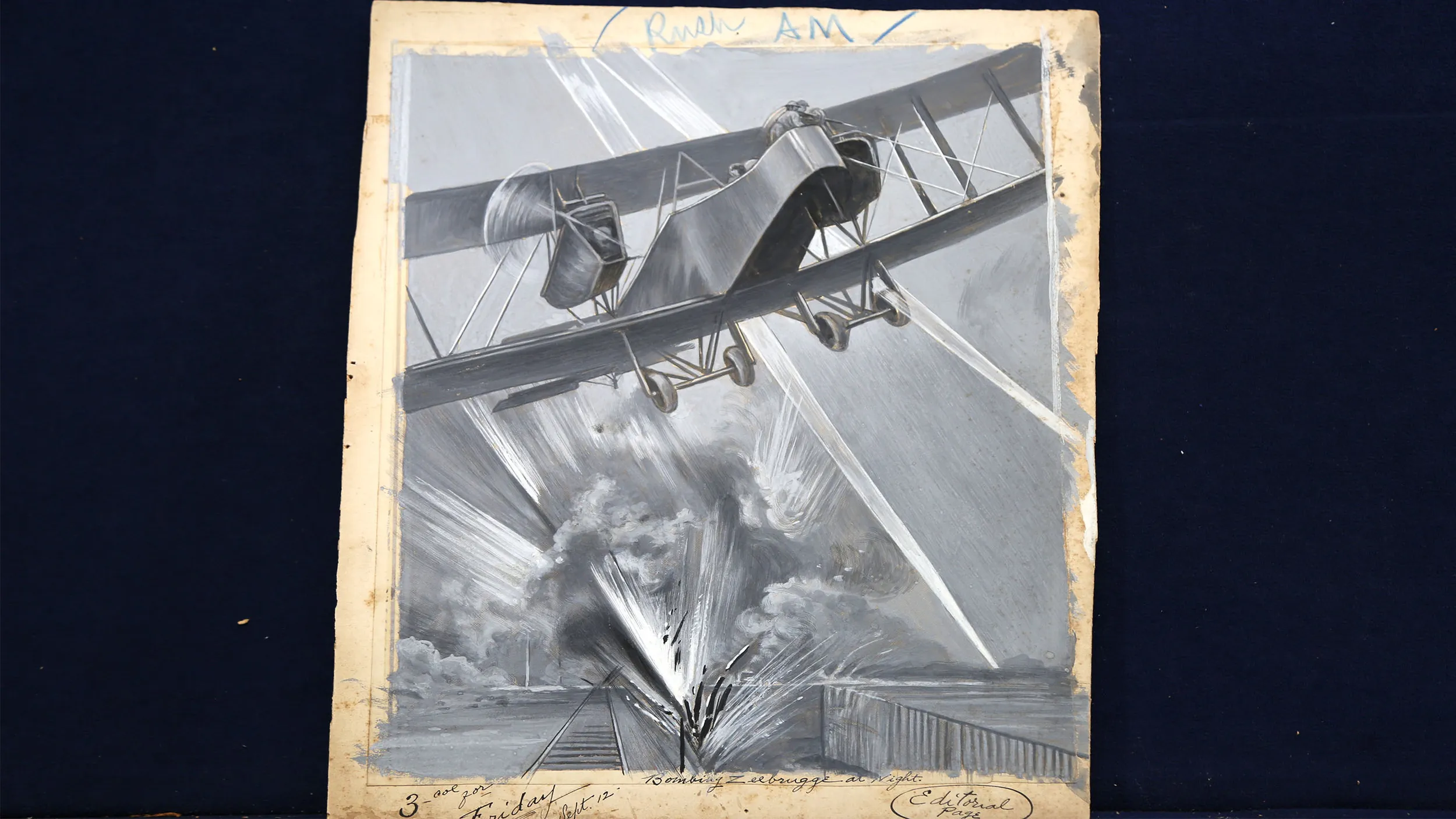 Susan inherited the collection of intriguing pictures from her father, a college art professor, who had bought them in Sarasota years ago. Done in gouache, many of the camera-ready illustrations were published around 1915 — in the early days of aviation — as part of a publication entitled "How Man Learned to Fly."
