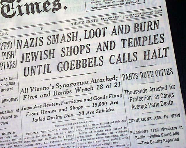 - The New York Times following the Kristallnacht pogrom of November 9-10, 1938.