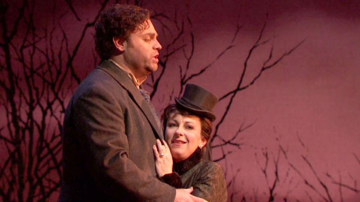 Joseph Calleja as Edgardo and Natalie Dessay as Lucia in a scene from Act 1 of Donizetti’s Lucia di Lammermoor sing a duet in the Metropolitan Opera’s production.