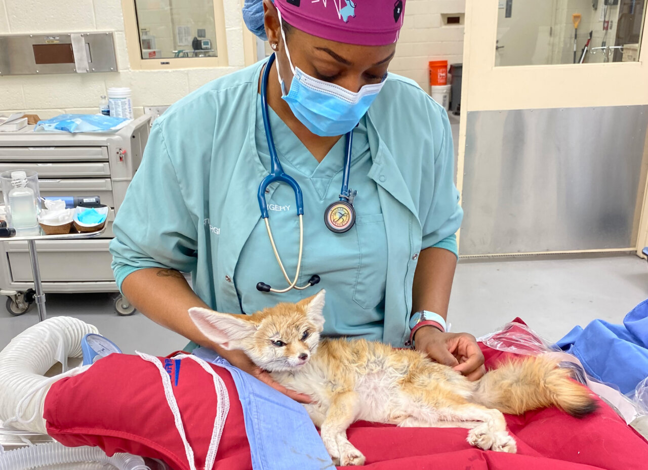 Fennec fox recovering from surgery. Photo credit: Rachel Herdman, LVT ©️WCS