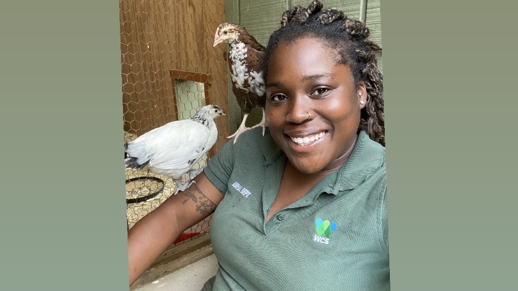 Ayesha with Prospect Park Zoo chickens. Photo courtesy Ayesha Smith.