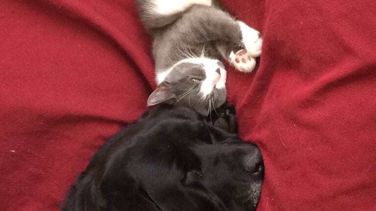 This is Rocky the Lab and Holden the Cat. They are the best of friends. Even though Rocky is five times Holden’s size he’s as gentile as a lamb.