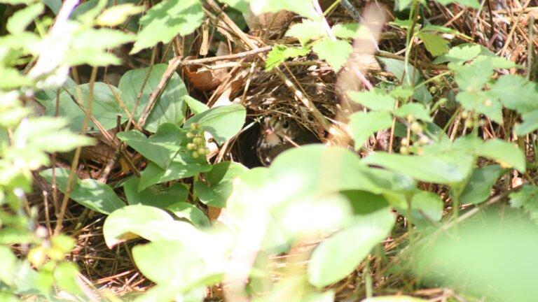 Photo was taken in southern Ontario, Canada while monitoring bird nests. An Ovenbird pays very close attention to me and with good reason, 4 young are inside.