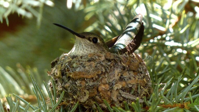 In the spring of 2013, my friend’s pine tree served host to this broadtail hummingbird’s nest. The tree sat just outside her back door nestled in the western city limits of Boulder, CO.