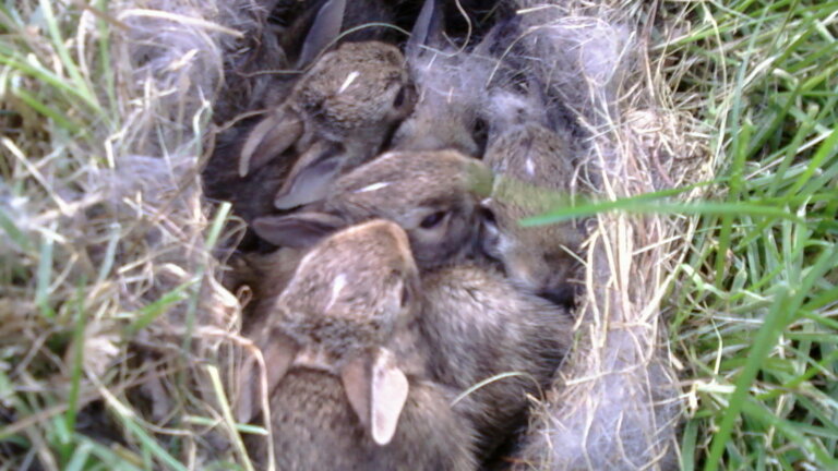 This bunny nest was in the middle of my yard. My dog found it and became it’s protector!