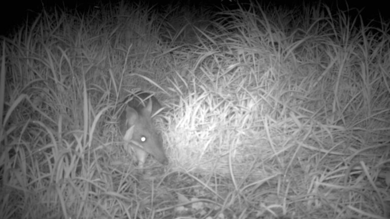 This image and is of a a beautiful Long-nosed Bandicoot in my urban Sydney backyard. They have returned to the area after a 50 year absence. They feed on insects, worms, leaves, roots and fungi . They are nocturnal marsupials and are up to 22 inches long.