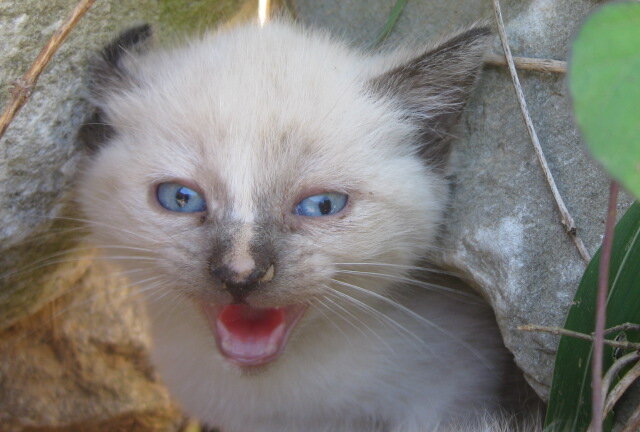 Callie is a very sweet kitten until she gets sleepy. There is a hidden place under the rocks that is her favorite spot.